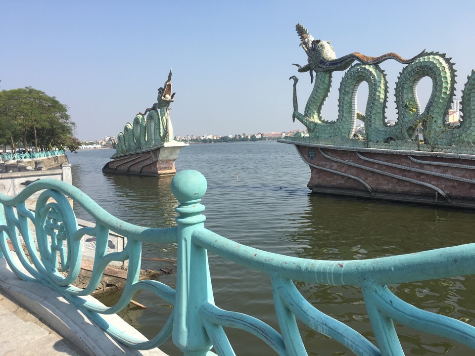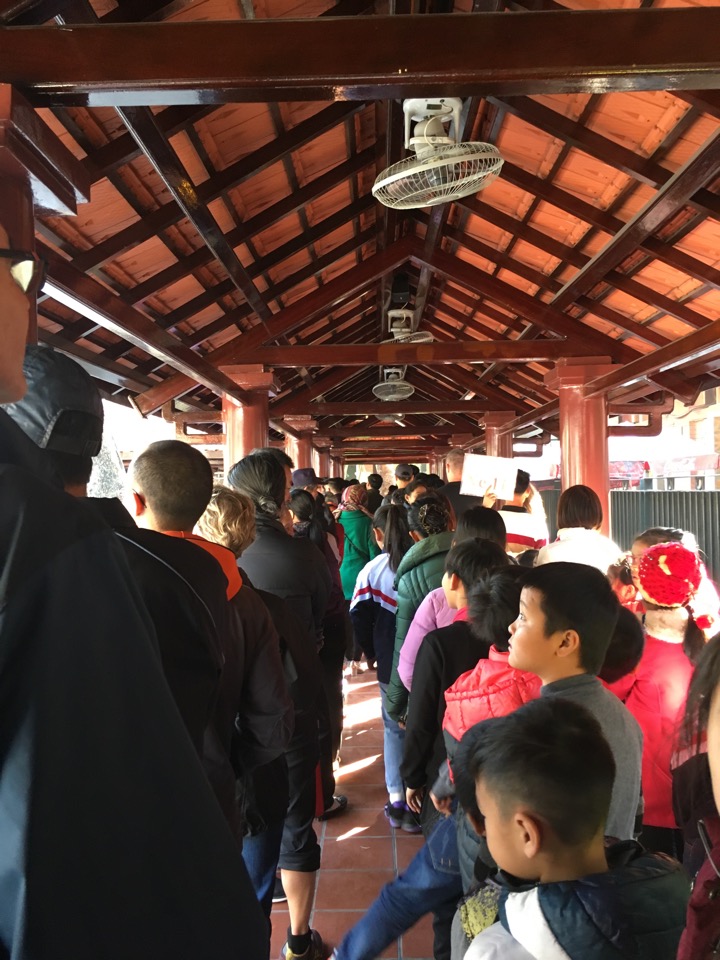 Our early morning and late afternoon involved touring on foot. Our group visited Ho Chi Minh’s mausoleum and the surrounding grounds, standing in line with with thousands of others to walk quietly by his preserved body lying perpetually in state.