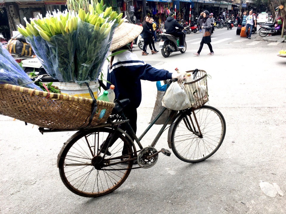 Our first morning in Vietnam. We took a slow stroll (our jet-lagged bodies couldn’t handle more) through the nearby Old Quarter and quickly learned that the signature sound of Hanoi is the beep-beep of motorbikes warning pedestrians and other scooter riders away. Scooters parked on sidewalks often force pedestrians onto the crowded streets. There are few traffic signals and everybody plays chicken to decide who gets the right of way.