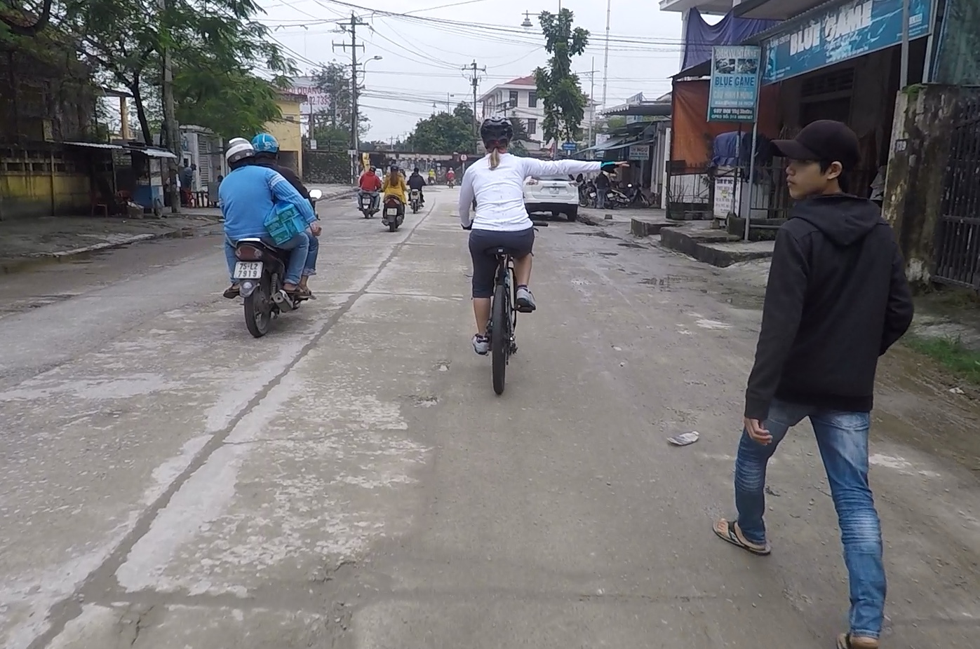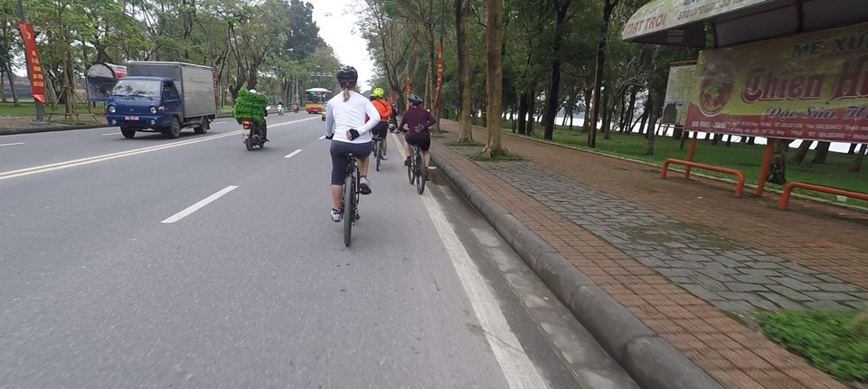 In addition to hand signals, our group adopted some cycling code speak along the way: Đi nào! (Let’s go!), the happy room (bathroom), happy bush (same result), ABC check (air, brakes, and chain), sticky rice (stay close together at a busy intersection), and Kar Ho’s, “It’s just peddling” to put things in perspective on a long or hard ride. And we’ve acquired nicknames: Baz and Shaz from our Aussie travel mate, John.
