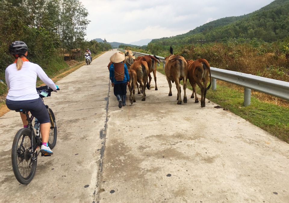 We departed the beach town of Quy Nhon at 7 a.m. Monday, riding a few minutes by bus to get us to our cycling start. The typhoon that hit the Philippines a few days ago is expected to make landfall in Vietnam on Tuesday. Although the eye of the storm is south of us, the weather looked foreboding. We were feeling pretty lucky that it was just clouds and a bit of wind as we got started.