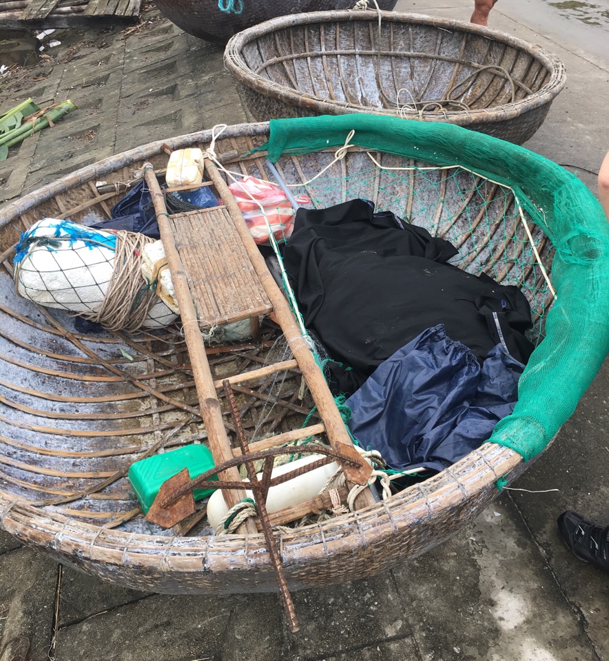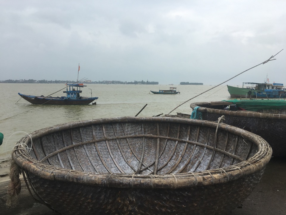 Vietnam is a country with a long coastline, and fishing is central to Vietnamese culture. This morning we also cycled along the waterfront of the Thu Bon River outside of Hoi An and near where it feeds onto the ocean. Small fishing boats and woven bamboo fishing baskets were beautiful in the water. These are used to bring a wide variety of fresh seafood to market – more choices than we’ve ever seen at a market in the US.